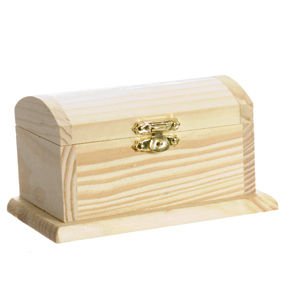 A Treasure Chest to Store the Pirate Loot! Keep your buried treasure safe with one of our pirate treasure chests. Treasure chests like these make great stage props, gift boxes, pirate party favors and pirate decorations. 4 3/4″ long, 2 1/2″ wide, and 2 1/2″ tall. Made of wood. This treasure chest is paintable. Complete you pirate party with pirate’s buried treasure, and keep it safe with a pirate’s treasure chest! No pirate would sail the seven seas without the perfect pirate treasure chest so neither should you! And don’t forget to check out our stunning pirate party favors, supplies and decorations. Part of Supplies > Boxes